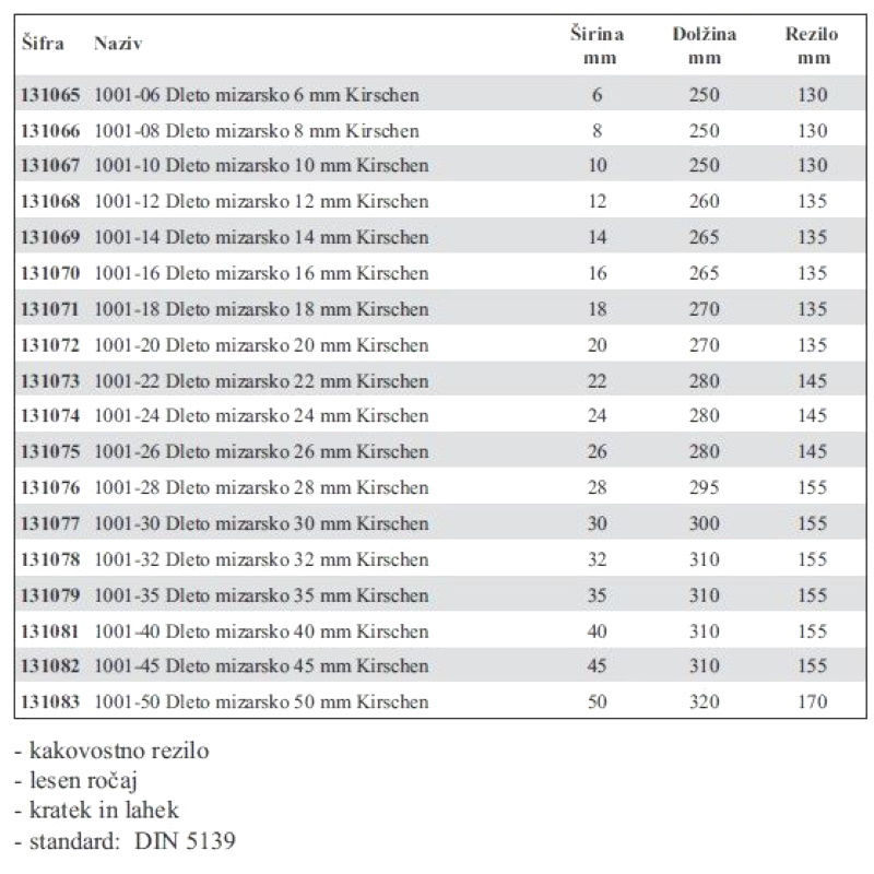 Mizarsko dleto Profi-1001-08 DLETO MIZARSKO 8 mm KIRSCHEN- kakovostno rezilo- lesen ročaj