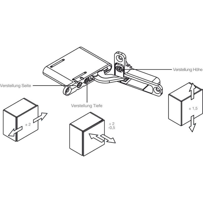 • 3-dimenzionalno nastavljivo: vodoravno ±2 mm; globina +2/-0,5 mm; navpično ±1,5 mm.