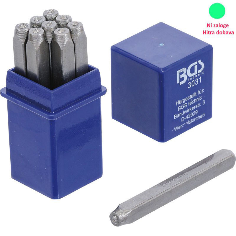 Idealno za vtiskovanje v jeklo in železo z enakomernim izgledom številk po DIN 1451. Gravura je nameščena na izbočeni površini z omejeno globino. Set je dobavljiv v kaseti in je izdelan iz orodnega jekla s trdoto od 46 do 52 HRC.