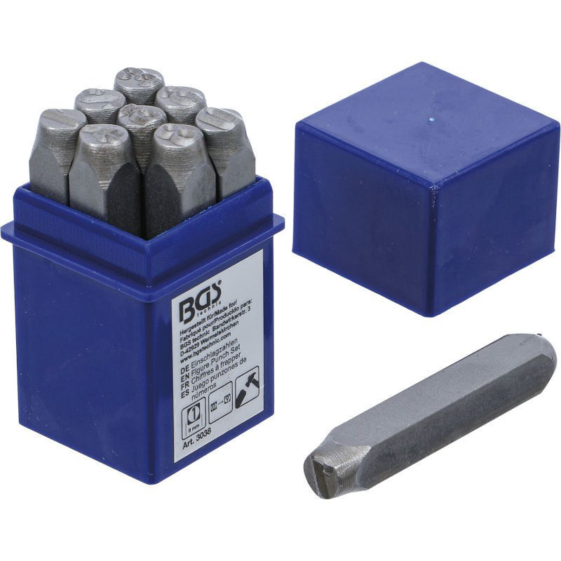 Idealno za vtiskovanje v jeklo in železo z enakomernim izgledom številk po DIN 1451. Gravura je nameščena na izbočeni površini z omejeno globino. Set je dobavljiv v kaseti in je izdelan iz orodnega jekla s trdoto od 46 do 52 HRC.