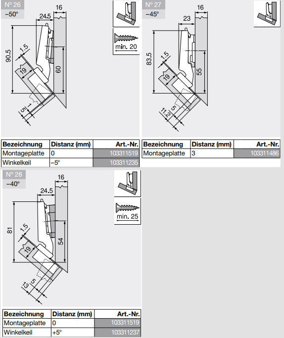 - Odmične spone iz polne kovine, ponikljane- Kotna odmična spona -45° III- Kot odprtja 110°- Z udobno nastavitvijo globine prek polžastega vijaka- Z zapiralno vzmetno avtomatiko- Montaža (in demontaža) vrat na omaro brez orodja- 3-dimenzionalna nastavitev (z ustrezno montažno ploščico)
