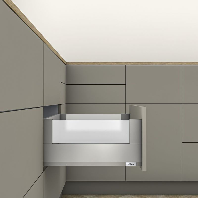 Obseg dobave:1 x garnitura nosilnih stranic in pokrivnih kapic1 x garnitura vodil za predal BLUMOTION S1 x garnitura pritrdilcev lesene zadnje stranice1 x garnitura Boxcover1 x garnitura stranski stekleni vmesni element