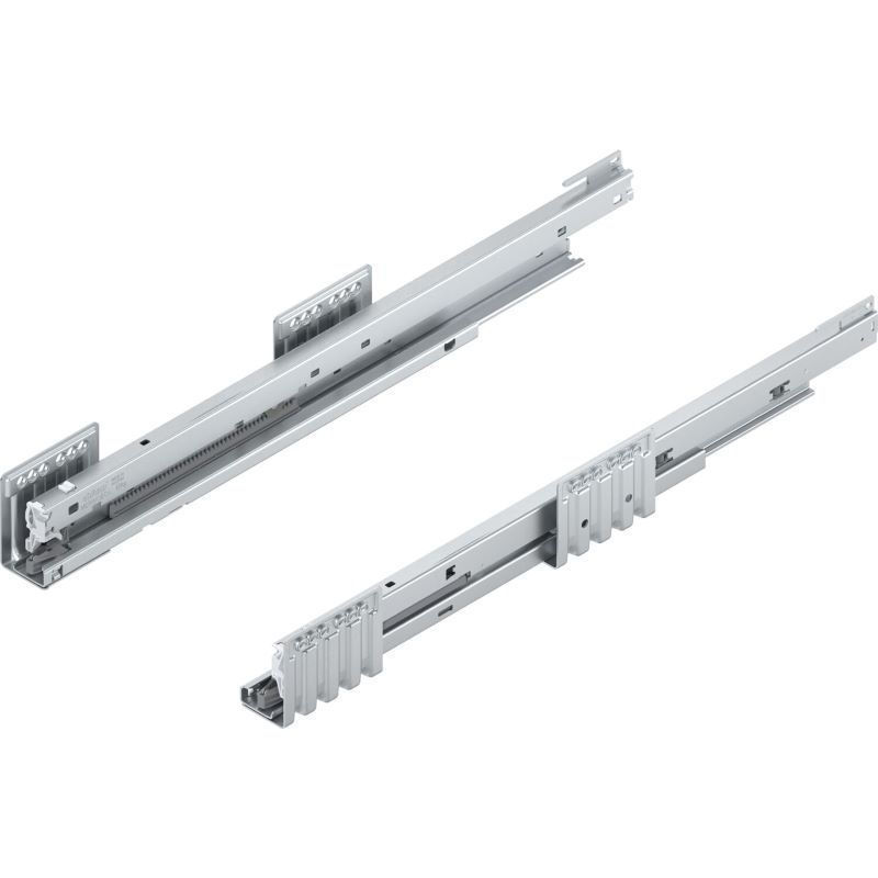 BLUM MERIVOBOX vodilo predala, BLUMOTION S, ND 600, 70 kg-BLUMOTION S - BLUMOTION ali TIP-ON BLUMOTION vgrajeno v eni vodilni tirnici. Enota TIP-ON BLUMOTION se s pritrditvijo samodejno prilagodi blaženju.