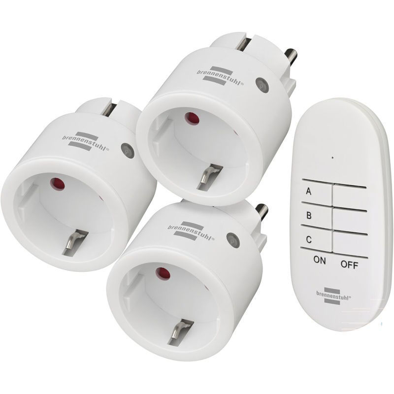 BRENNENSTUHL set s 3 vtičnicami in daljincem, bel, 3 adapterji za vtičnice s signalnim sprejemnikom za notranje prostore