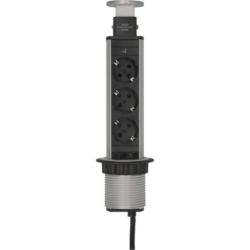 BRENNENSTUHL vtičnica Tower Power, 3 x Schuko, barva aluminija, Potopna vtičnica za vgradnjo v mize in delovne plošče.