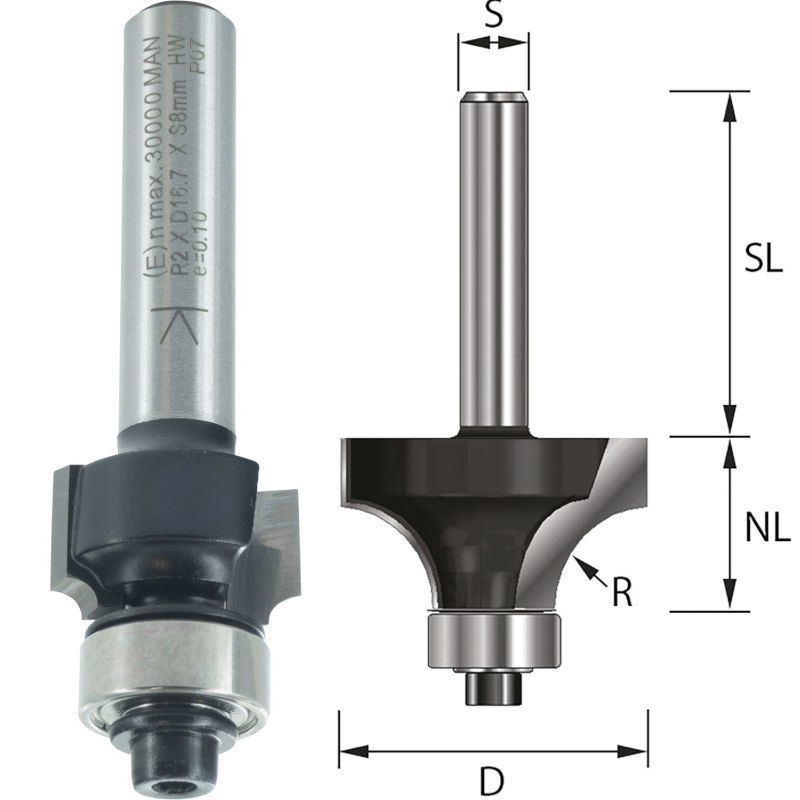 Dvostranski kotni rezkar z zamenljivim krogličnim ležajem Ø 12,7 mm. Za čiste in natančne okrogline ravnih in ukrivljenih robov.