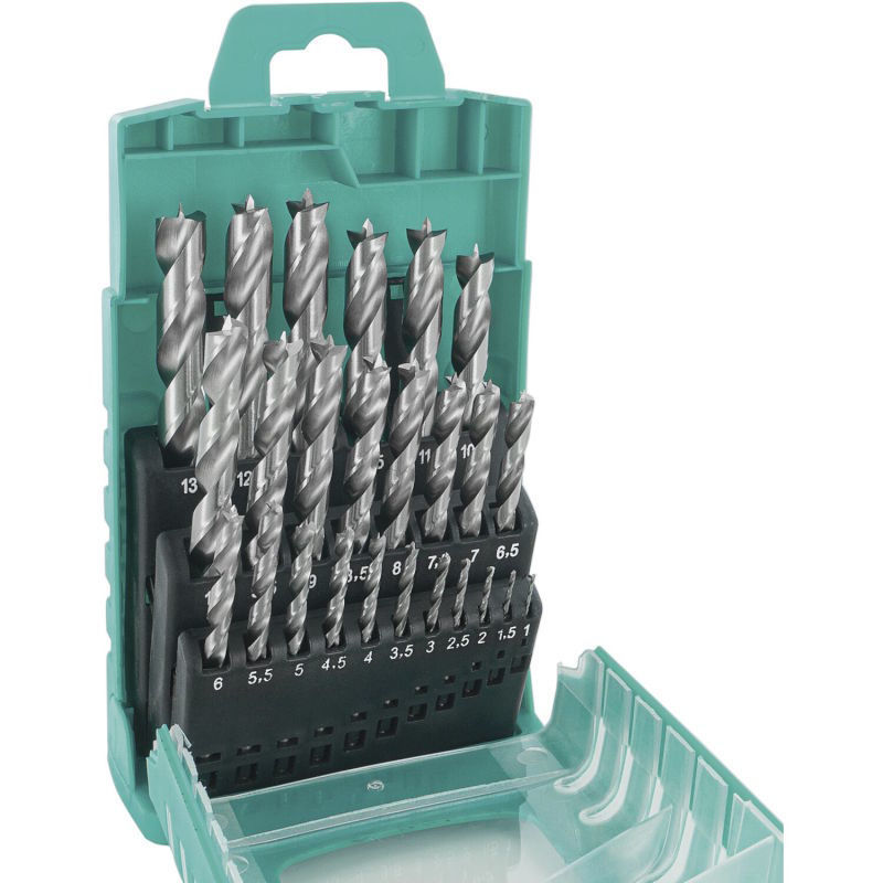 ENT spiralni svedri za les v kaseti HSS-G, sveder ø 1-13 mm, 25-delni, Za vrtanje lukenj v trd in mehak les