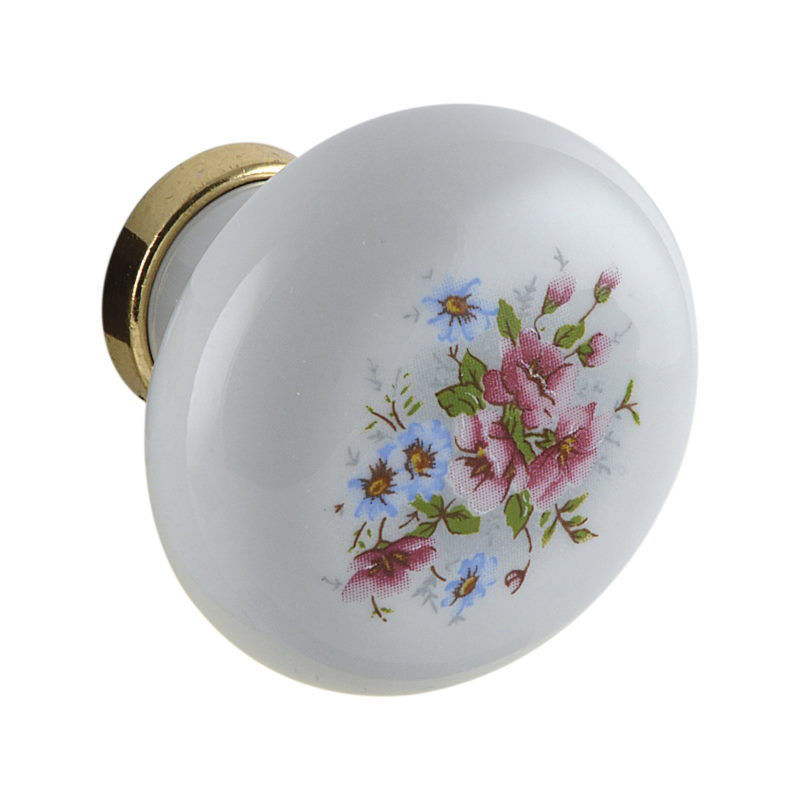 Gumb Cary, ø 35 mm, porcelan/medenina, belo barvana/poliran