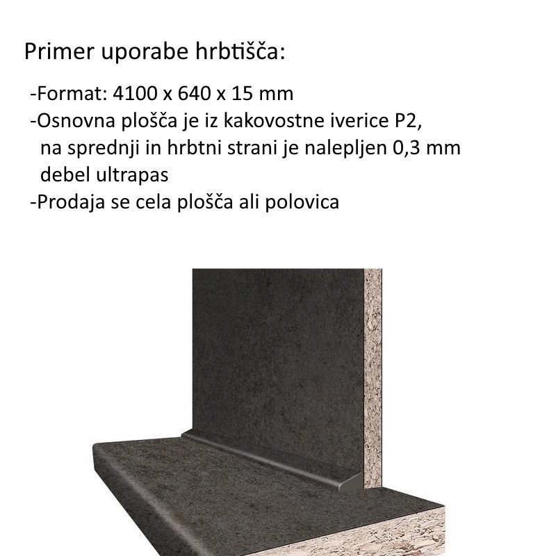 HRBET DEL.PLOŠČE 34038AT / 34232AT 15mm-Osnovna plošča je iz kakovostne iverice P2, na sprednji in hrbtni strani je nalepljen 0,3 mm debel ultrapas