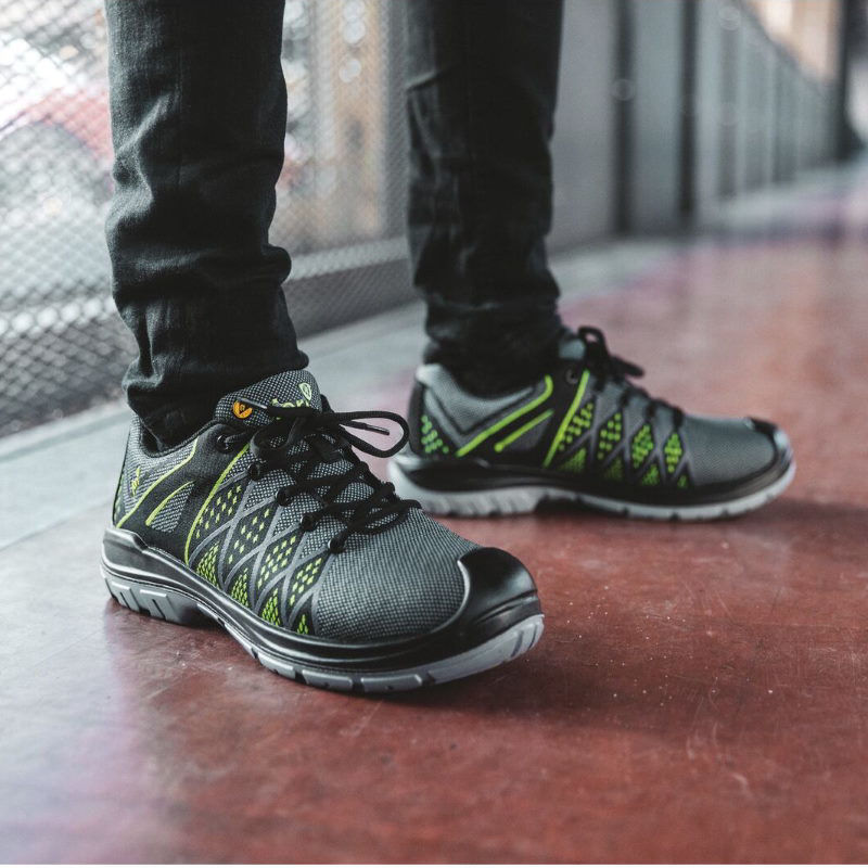 Športnega videza. Čevelj FLEX green Low ESD S1P pritegne pozornost. Športni varnostni čevelj iz kolekcije JORI s privlačnim vzorcem ob strani čevlja prepriča z vidika varnosti in videza. Zgornji del čevlja iz odpornega tekstila in zračna tekstilna podloga čevlja zagotavljata prijetno udobje pri nošenju. Jeklena konica in nekovinski neprebojni podplat uspešno preprečujeta nevarnosti vsakdanjega delovnega življenja. Dvignjena zaščita konice s PU zagotavlja ne le videz športnega čevlja, temveč tudi ščiti sam čevelj pred prezgodnjo obrabo in zagotavlja dolgo življenjsko dobo čevlja. PU/PU podplat je primeren za gladke površine v proizvodnji in delavnici. Čevelj brez usnja in skladen z ESD je na voljo v velikostih od 40 do 48.