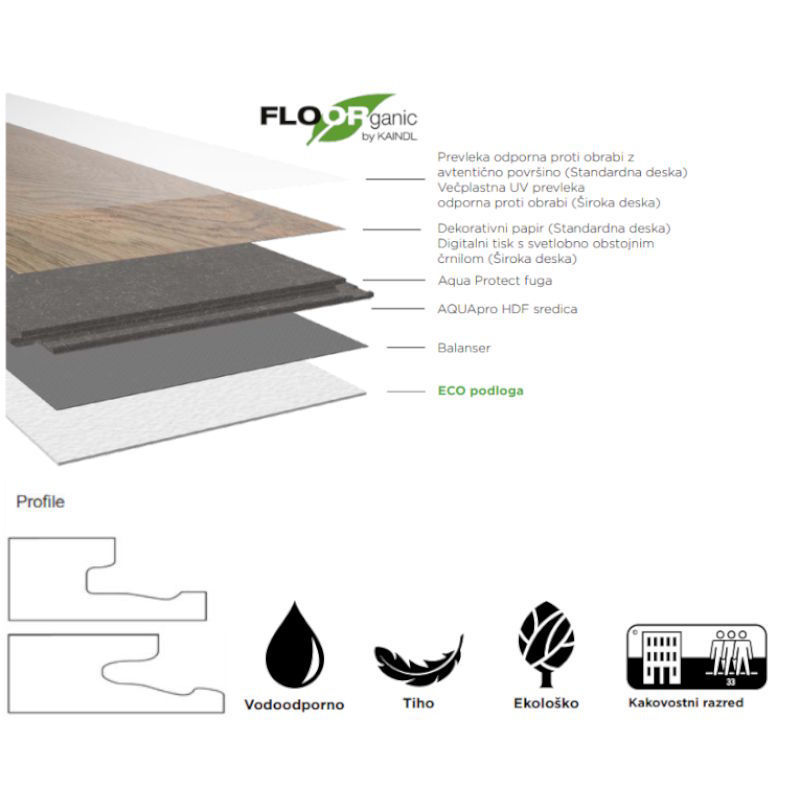 Kaindl FLOORganic s pritrjeno podlogo za zmanjšanje udarnega zvoka kombinira visoko odpornost na vlago z impresivnim dušenjem zvoka ... in to bolj trajnostno kot kdaj koli prej.Ta nova linija talnih oblog navdušuje s svojimi inovativnimi koncepti dekorjev, ki imajo sodoben videz in občutek. Zadržana eleganca,impresiven pridih obnovljenega lesa in nenavadna igra barv –ti privlačni dizajni vdahnejo novo življenje kolekciji Kaindl.