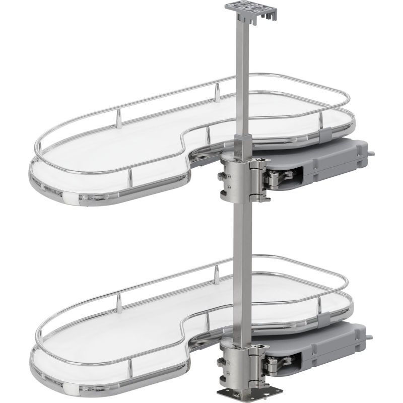 Kotno okovje VAUTH-SAGEL CORNERSTONE MAXX KB800 levo krom/belo-Polica se izvleče v celoti,kar omogoča optimalni dostop do predmetov. EasyFit: polico lahko namestimo na oporno cev brez orodja.Brez orodja višinsko nastavljivo dno.