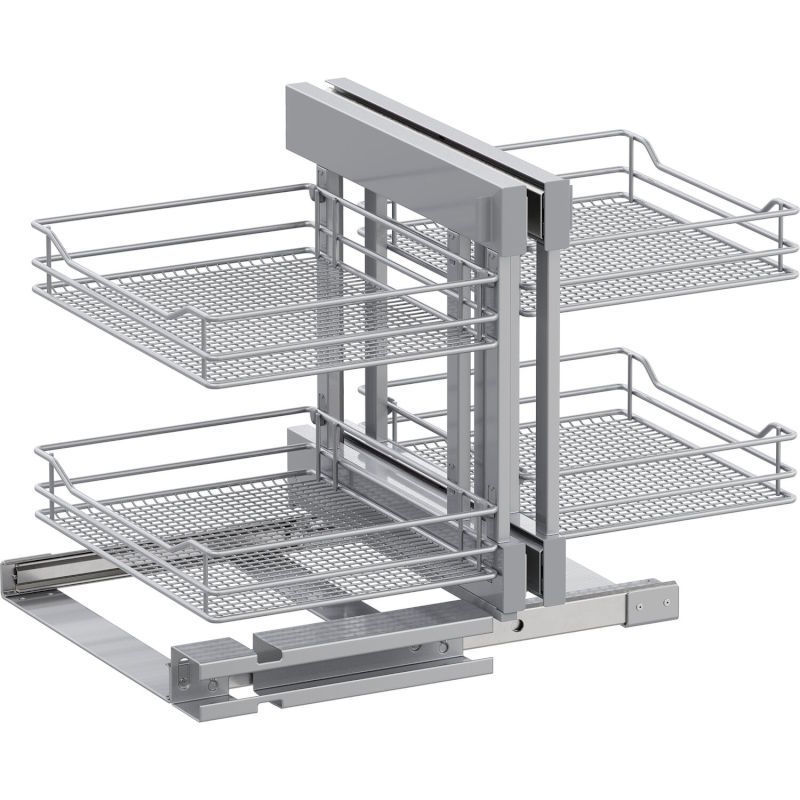 Kotno okovje VS COR Flex Saphir vklj. košare, KB1000 kovina RAL 9006-Popolni doseg prostora v celotni kotni omari.