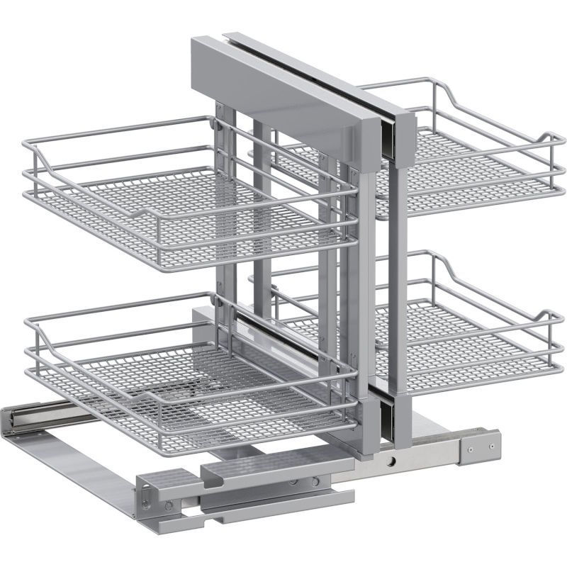 Kotno okovje VS COR Flex Saphir vklj. košare, KB900 kovina RAL 9006-Popolni doseg prostora v celotni kotni omari.