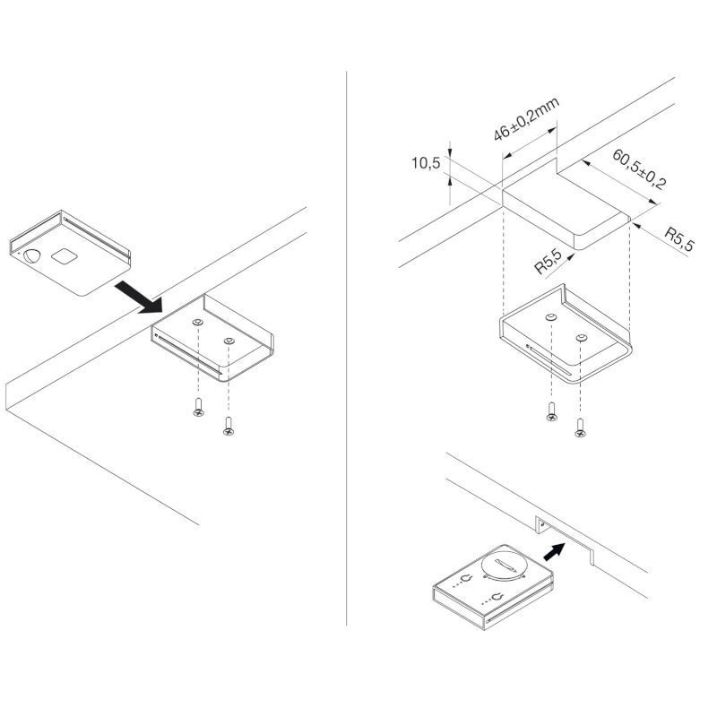 – kapacitivno stikalo za zatemnitev, ki omogoča vklop in izklop, stopenjsko zatemnjevanje ter nastavitev barve svetlobe v kombinaciji z DualColor upravljalnim modulom.