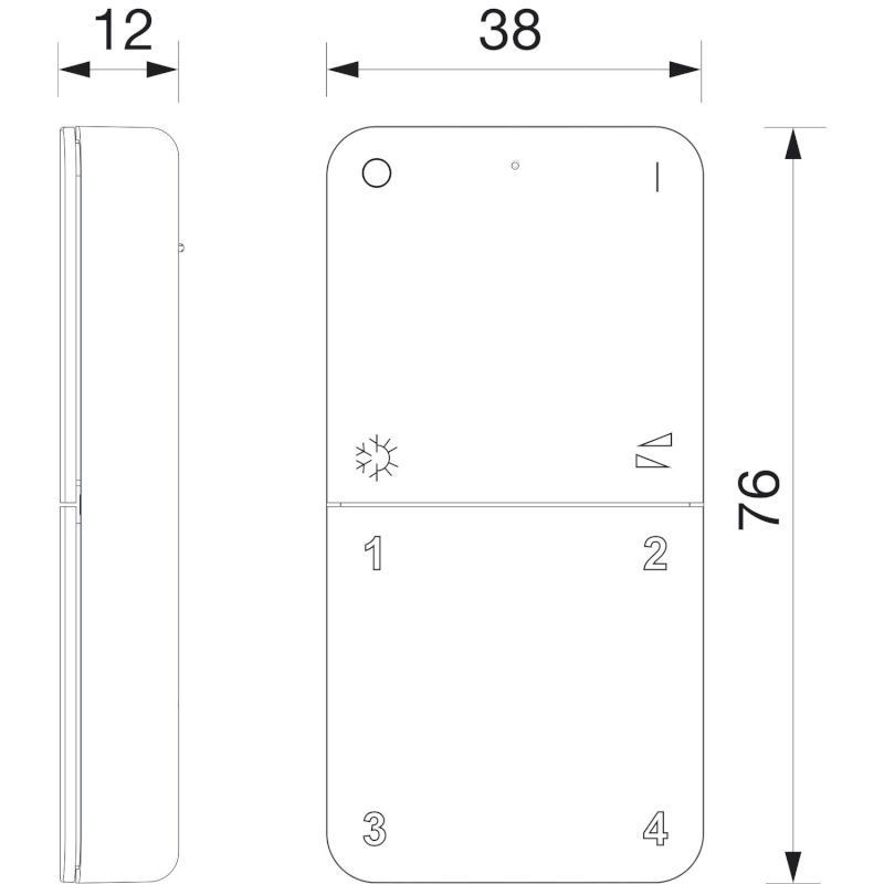 Obseg dobave: – daljinec z magnetnim stenskim nosilcem in baterijo CR2032.