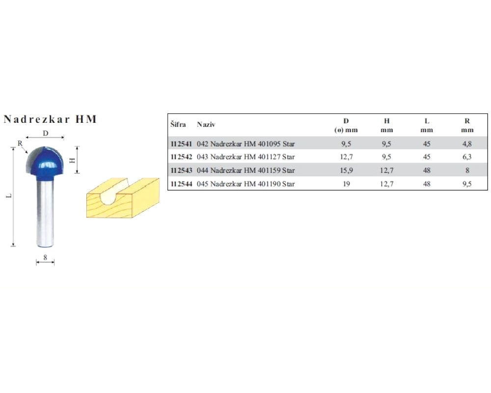 Profilni stebelni nadrezkar z rezili HM se uporablja za izdelavo utorov z zaokroženim dnom ali za izdelavo dekorativnih izrezov.