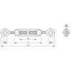 Napenjalec z obroči DIN1480 M10, z ušesci, inox A4-Z 2 obročema; ni vključen v DIN 1480.