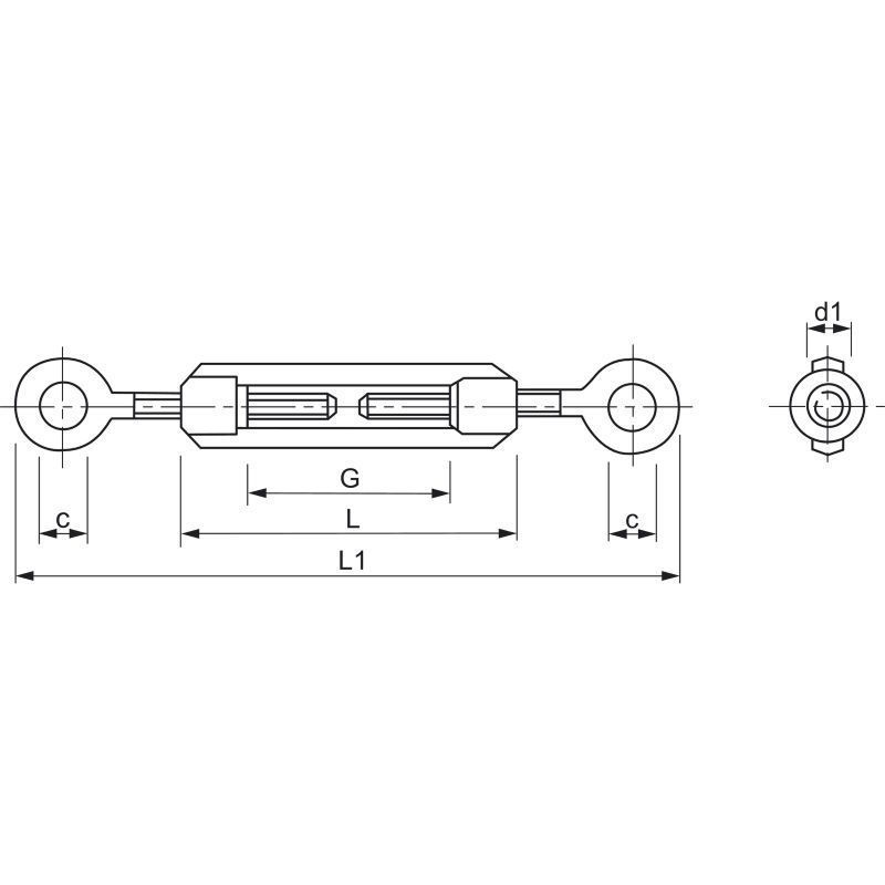Napenjalec z obroči DIN1480 M5, z ušesci, inox A4-Z 2 obročema; ni vključen v DIN 1480.