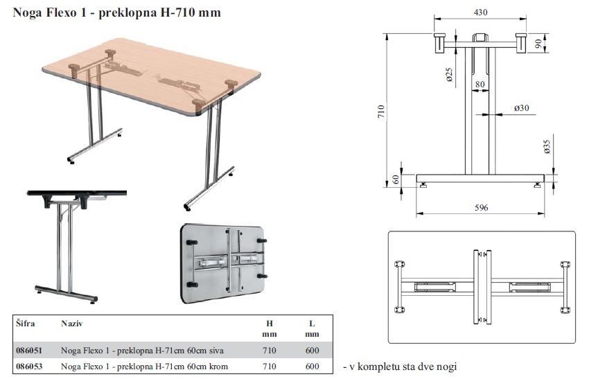 Noga Flexo 1 - preklopna H-710 mm- v kompletu sta dve nogi