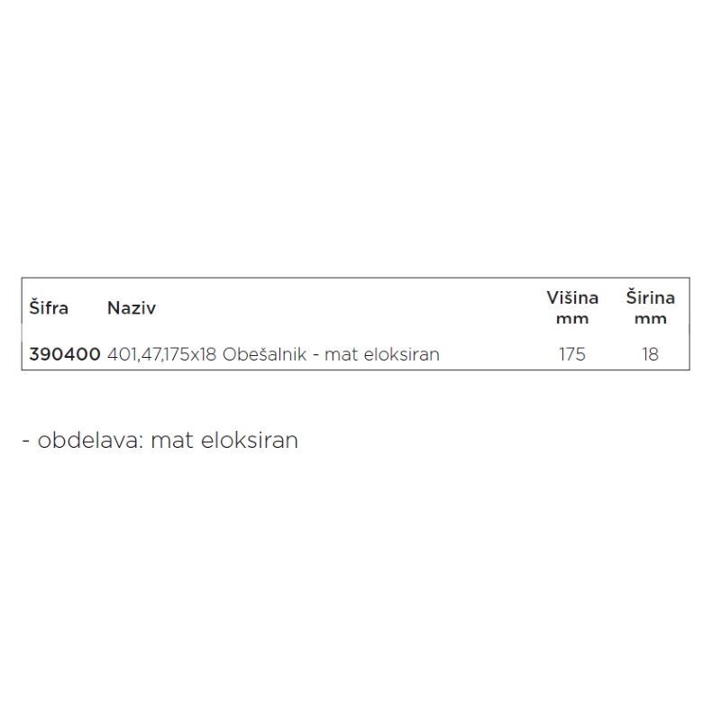 401,47,175*18 OBEŠALNIK-MAT ELOXIRAN-Obešalnik iz aluminija