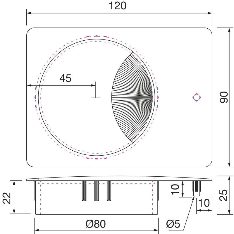 Oglati prehod za kable s tesnilno ščetko, zamak, videz inoxa-Uvodnica za kabel, oglata,s tesnilno ščetko