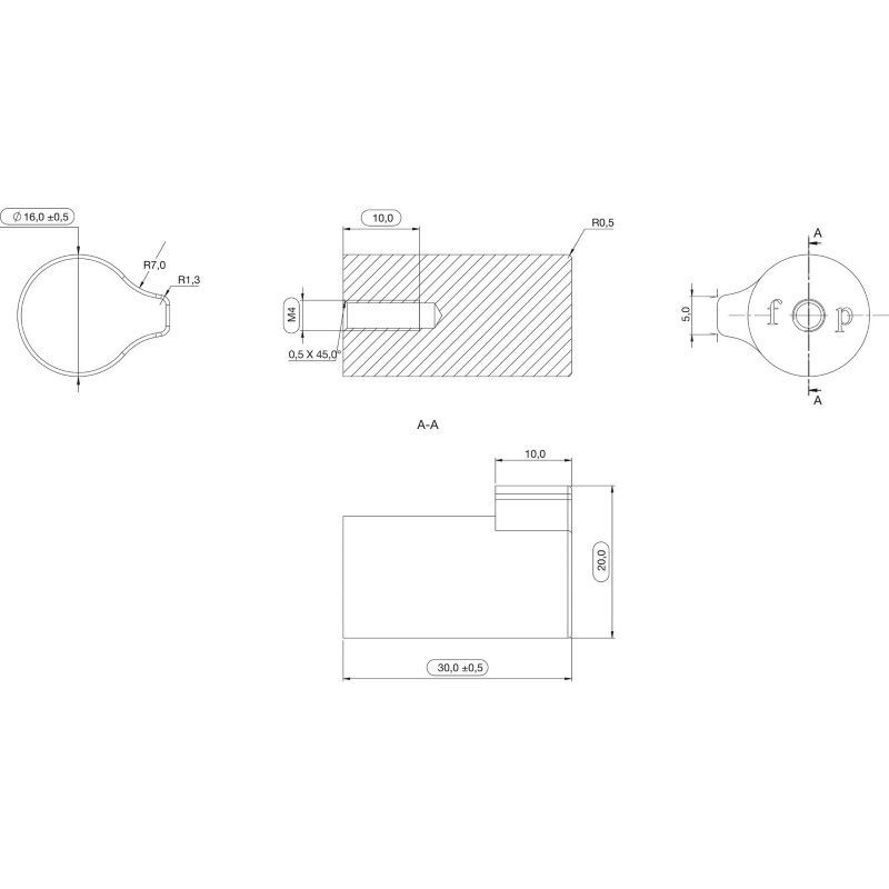 Pohištveni gumb Scope Ø 16, višina 20, globina 30 mm, cinkova lit., videz inoxa.
