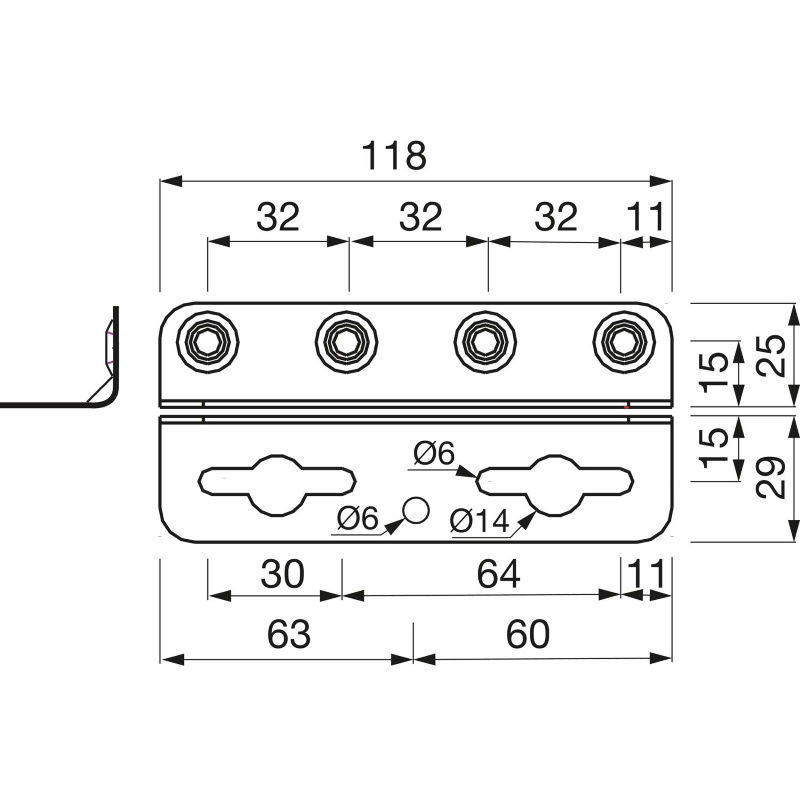 Posteljno okovje REFORM, dolžina 118, leva ali desna, jeklo, rumeno cinkano-z dvojnimi vpenjalnimi luknjami klinaste oblike.