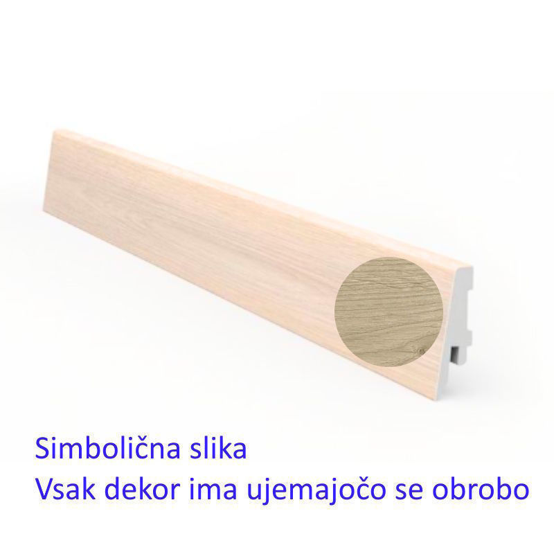 - Ta moderna, 58 mm visoka, vlagoodporna PVC letev v ravni obliki popolnoma prekrije raztezanje med tlemi in steno.