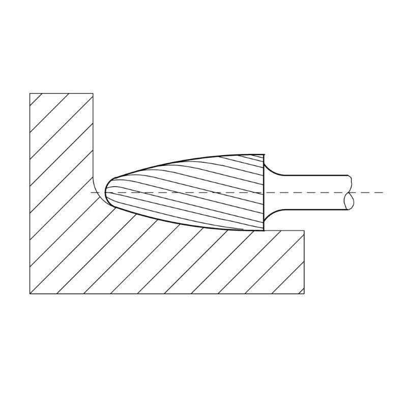 Rezkalni nastavek LUKAS HM, oblika F polkr. gl. ø 12 mm dolž. 25 mm, zob. 4 Inox-S križnim ozobljenjem. Za visoko legirana jekla, litine in umetne mase, ki so odporne na rjo, kislino in vročino.