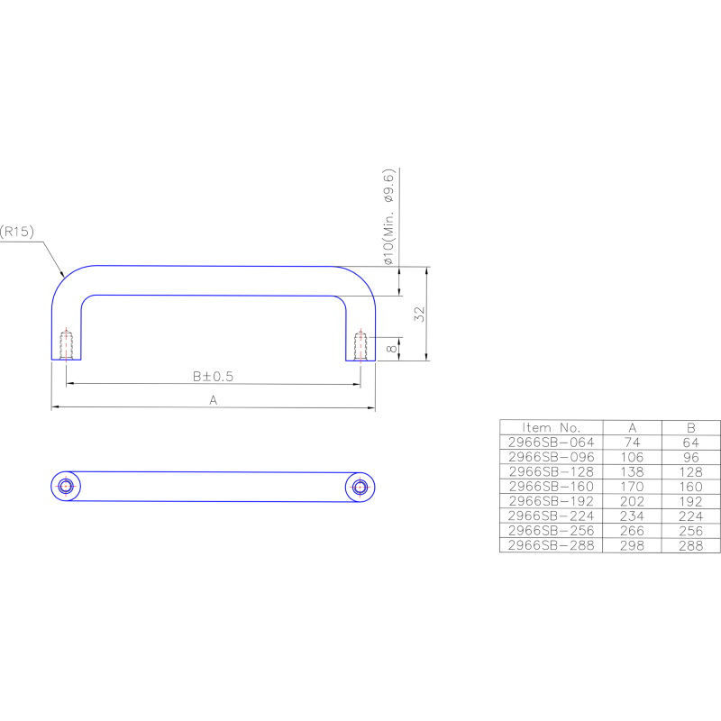 Ročaj Ritona ø 10 mm LA 128 mm, širina 138 mm - jeklo, kromirano polirano