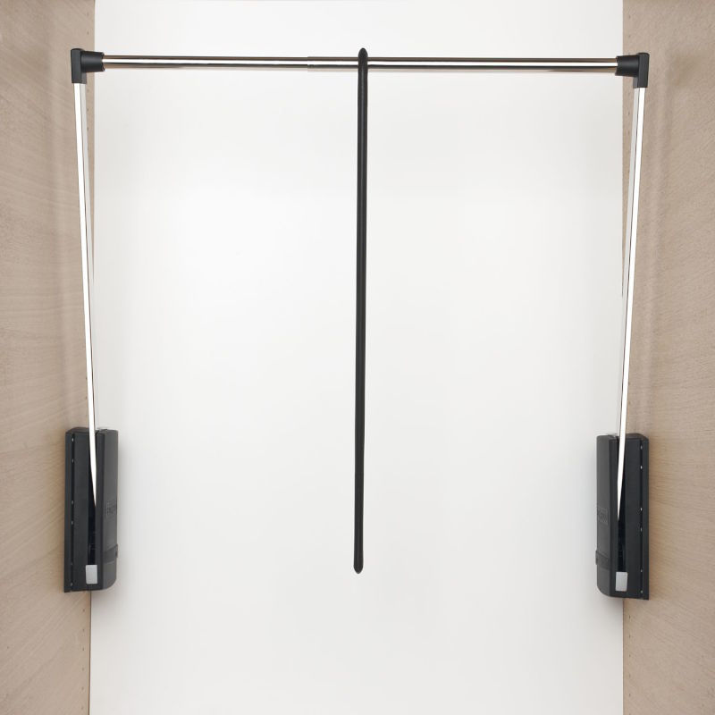 Mehanizem je primeren za obojestransko pritrditev na notranje stranice omare, neodvisno od širine omare. Je brezstopenjsko nastavljiv. Obešalni drog se povleče s pomočjo držala, ki je nameščen na sredini droga. Pri potiskanju obešalnika v navzgor, se ta sam zaniha v končni položaj.