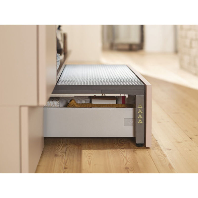 Nov sistem podstavka SPACE-STEP poskrbi za več skladiščnega prostora spodaj in lažji dostop do višjih omar. Z funkcijam izvlečne stopnice SPACE-STEP lahko izkoristite še neizkoriščen prostor v vašem bivalnem prostoru. Podstavek je sestavljen iz pohodne površine s pomočjo katere lahko dosežete predmete, ki so shranjena na najvišji polici in izvlečnega predala, ki poskrbi za več skladiščnega prostora.Možne so tri različne konstrukcijske oblike izvlečne stopnice SPACE STEP.