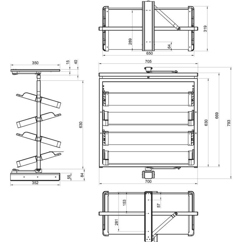 Set izvlekov za omaro za čevlje, 360° vrtljiv, 4 police.
