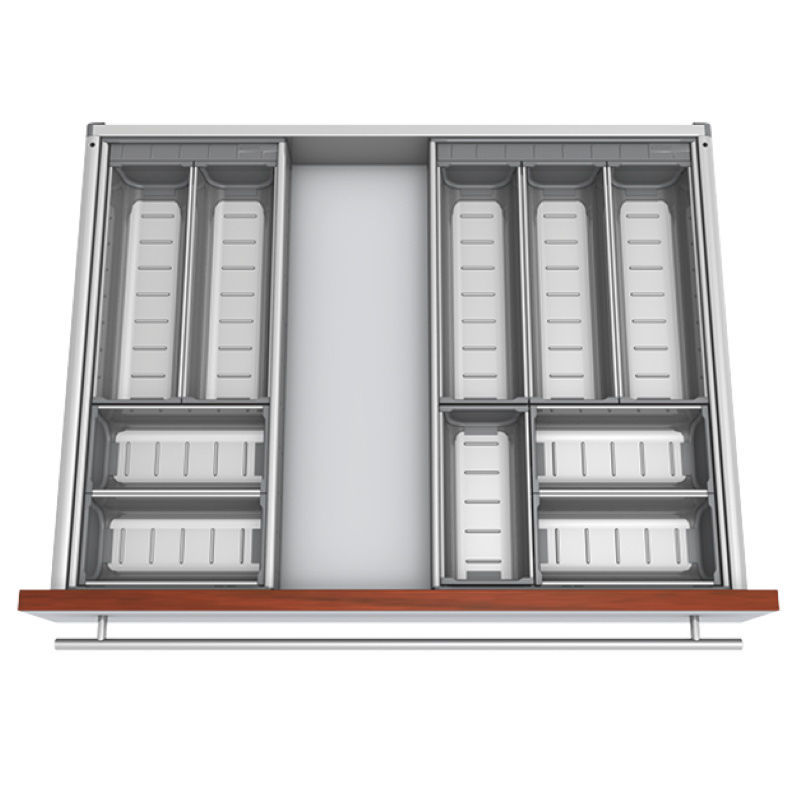 • Predelki in vzdolžni delilniki iz visoko kakovostnega legiranega jekla v kombinaciji z vzdržljivimi deli iz umetne mase,