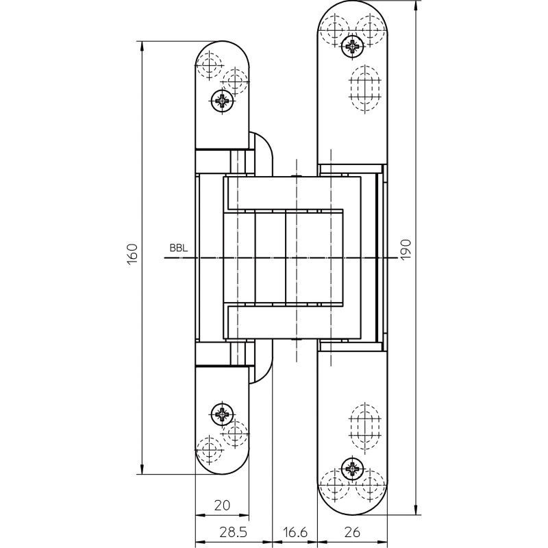 Spona je v celoti skrita.Preprosta montaža.Uporabna za levo in desno smer.Za brazdana vrata na masivnih, ivernih in jeklenih podbojih.Za uporabo na ivernih in jeklenih podbojih so potrebni ustrezni pritrdilni elementi.