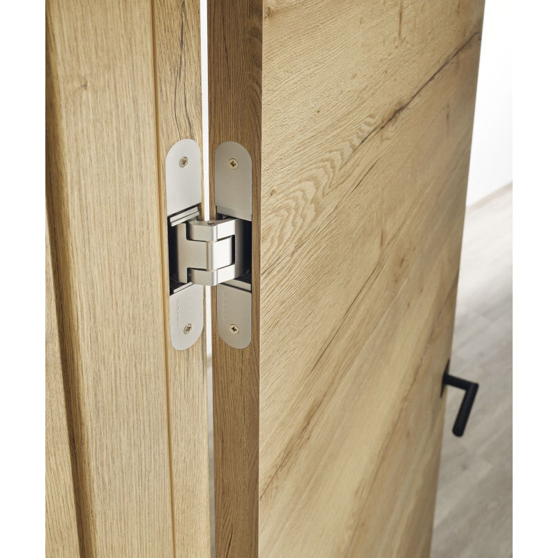 Spona je v celoti skrita.Preprosta montaža.Uporabna za levo in desno smer.Za nebrazdana vrata na masivnih, ivernih in jeklenih podbojih.Za uporabo na ivernih in jeklenih podbojih so potrebni ustrezni pritrdilni elementi.Namenska uporaba: varno proti ognju, dimu, koroziji.