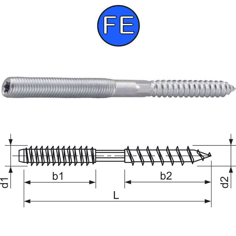 Stojni vijak 10 x 180 Torx, cinkan, s površino za privijanje-Montažni vijaki se uporabljajo predvsem tam kjer je potrebna povezava med grobim navojem (lesni navoj in navoj za vložke) in metričnim navojem.