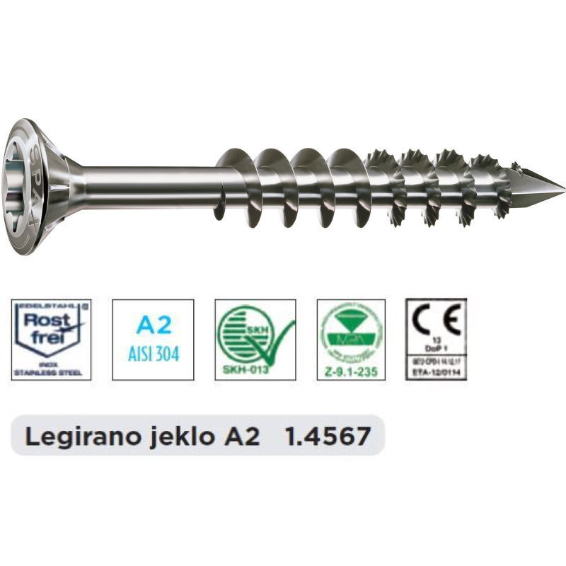 Lesni vijak za fasade z leč.gl. 4.5 x 45 SPAX, DN, TX20, A2 s certifikatom
