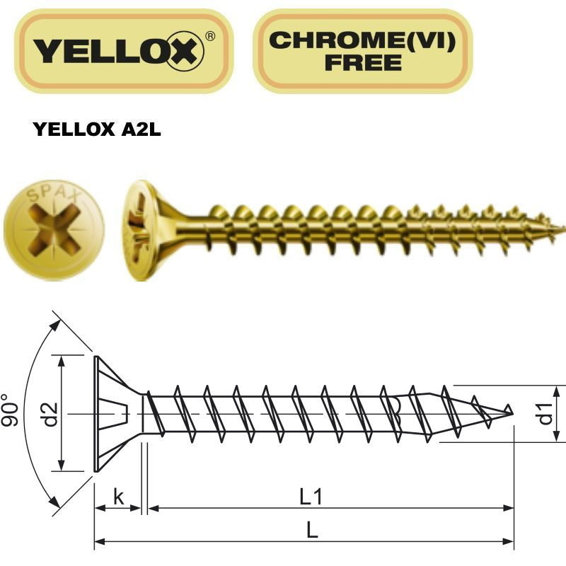 Vijak z vgr.gl. SPAX 4.0 x 20 CN, pozidriv 2 Yellox s certifikatom-d1 (mm): 4-L (mm): 20-L1 (mm): 16-d2 največ (mm): 8-k največ (mm): 2,4-Pogon: PZ 2