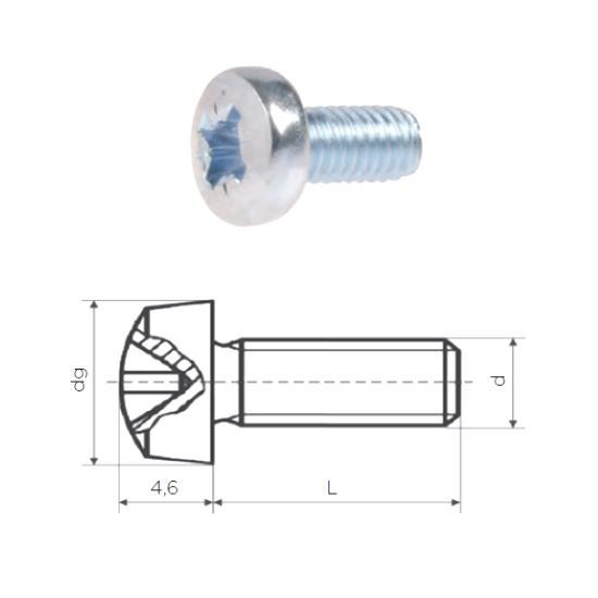 - metrični navoj- material: jeklo- obdelava: belo cinkan- višina glave hg: 4,6 mm- narejen po standardu DIN 7985- kakovost: 5,8- zareza v glavi: križna PH3