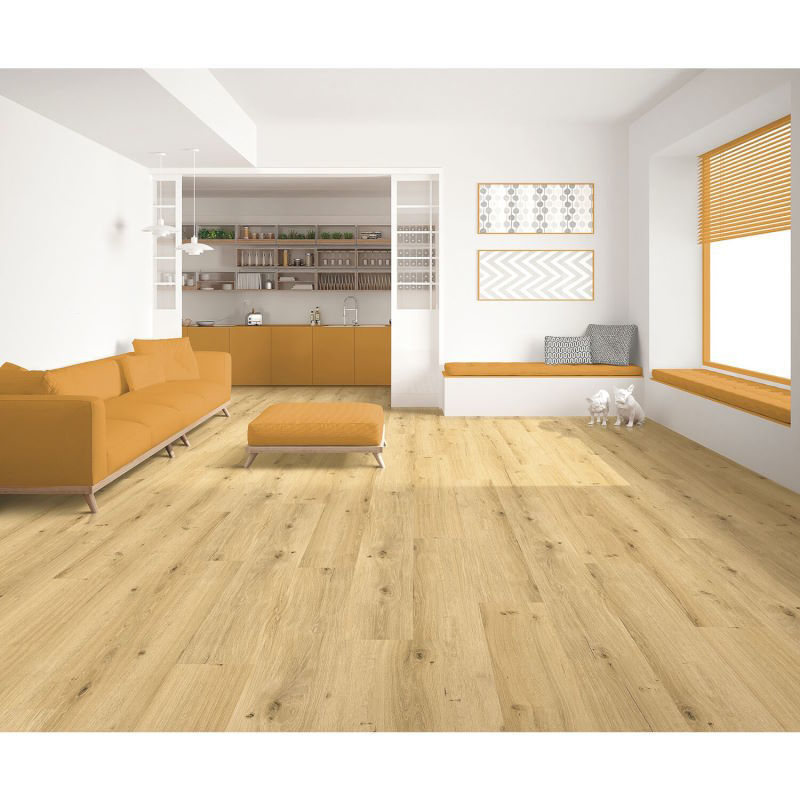 Vinilna površina z nežno krtačeno strukturo združuje sodoben videz, večplastno zasnovo in izjemno natančnost izdelave.