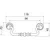 Viseči ročaj Flores, razmik lukenj 96 mm,Š 118 mm, cin.l.,star.med.,bruniran