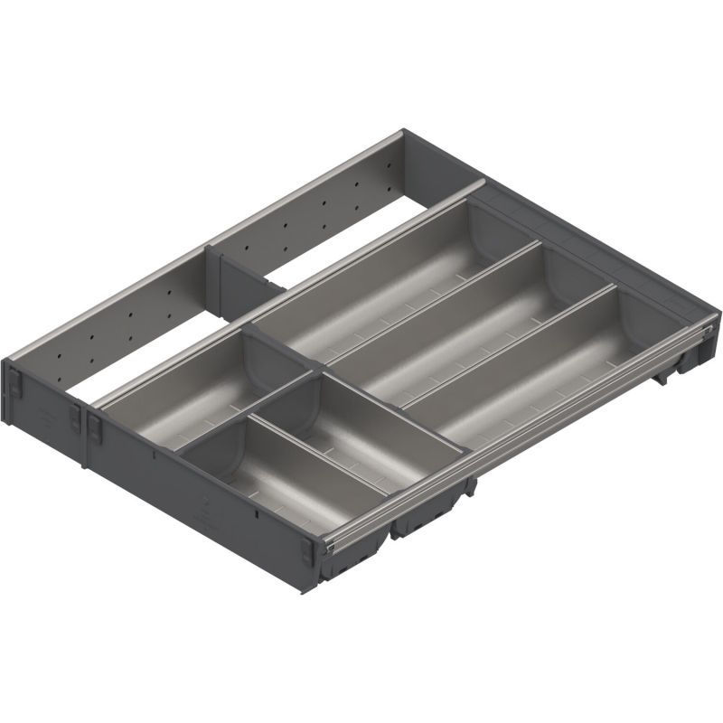 Predelki in vzdolžni delilniki so iz visokokakovostnega inoxa, v kombinaciji z vzdržljivimi deli iz umetne mase v RAL 7037 (siva).