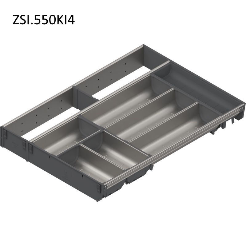 Predelki in vzdolžni delilniki so iz visokokakovostnega inoxa, v kombinaciji z vzdržljivimi deli iz umetne mase v RAL 7037 (siva).
